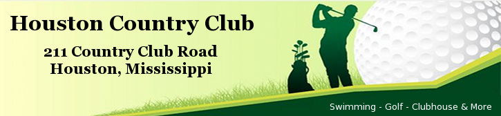 Located at 211 Country Club Road in Houston, Mississippi, Houston Country Club offers a variety of recreational activities for the entire family. For membership, enjoyment includes swimming (with lifeguard on duty of summer months), a nine hole golf course and a 3,000 square foot clubhouse featuring a ballroom and kitchen facilities. The clubhouse overlooks the picturesque golf course. There are planned activities for all ages to enjoy: pool parties, golfing events for ladies, men’s night, golf tournaments, cookouts, etc.
